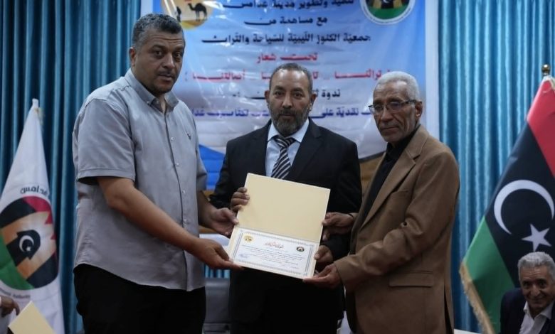 شهدت مدينة غدامس «جوهرة الصحراء» يوم الأربعاء الماضي 22 أبريل 2026م عرساً ثقافياً للكتاب نظمه جهاز تنمية وتطوير مدينة غدامس بالمساهمة مع «جمعية الكنوز الليبية للسياحة والتراث» احتفاءً باصدارات بعض أبنائها من المؤلفين والمثقفين؛ حيث انتظمت ندوة مسائية بمسرح المعهد العالي بعنوان )قراءات نقدية على مؤلفات لكتاب غدامسية( تضمنت عدة قراءات حول إصدارات أدباء وكُتَّاب غدامسيين بحضور لافت من الجمهور يتقدمهم رئيس المجلس البلدي لغدامس م. يعقوب إبراهيم ضو، ورئيس جهاز تنمية وتطوير مدينة غدامس السيد/ عبدالسلام المهدي هيبة، وعدد من الضيوف من )طرابلس، ودرنة، والزنتان، والرحيبات(، وغيرهم.
