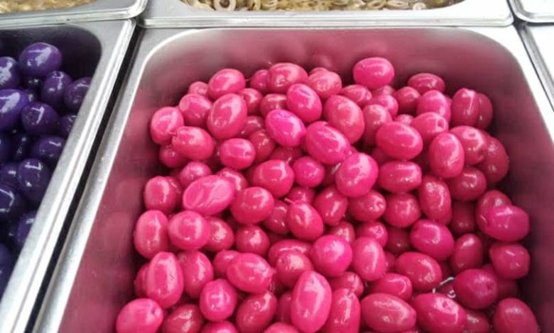 وأكثر‭ ‬ماراعني‭ ‬هو‭ ‬الزيتون‭ ‬الملون‭ ‬الذي‭ ‬يعرضونه‭ ‬في‭ ‬العراء‭ ‬مكشوف،‭ ‬والأغرب‭ ‬هو‭ ‬لونه‭ ‬غير‭ ‬الطبيعي‭ ! ‬صنف‭ ‬وردي‭ ‬،‭ ‬وصنف‭ ‬كحلي‭ ‬مزرقّ،‭ ‬وصنف‭ ‬مُوف‭ ..‬